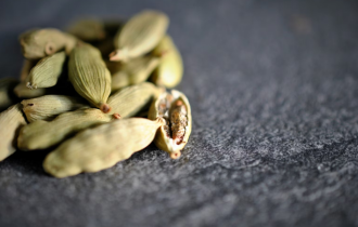 Cloves, cardamom, coffee beans, cashew, coffee mass, chocolate and shea butter